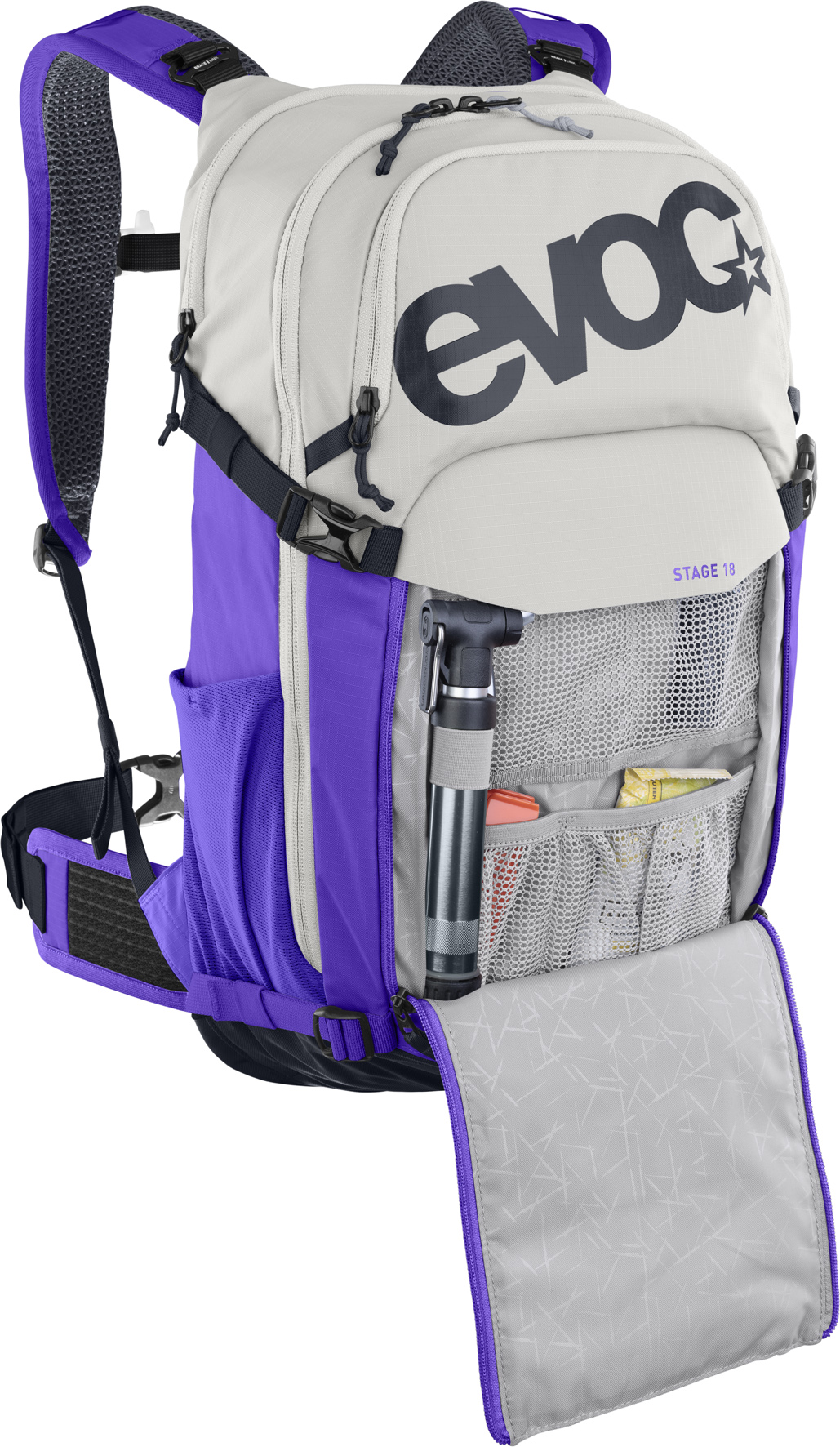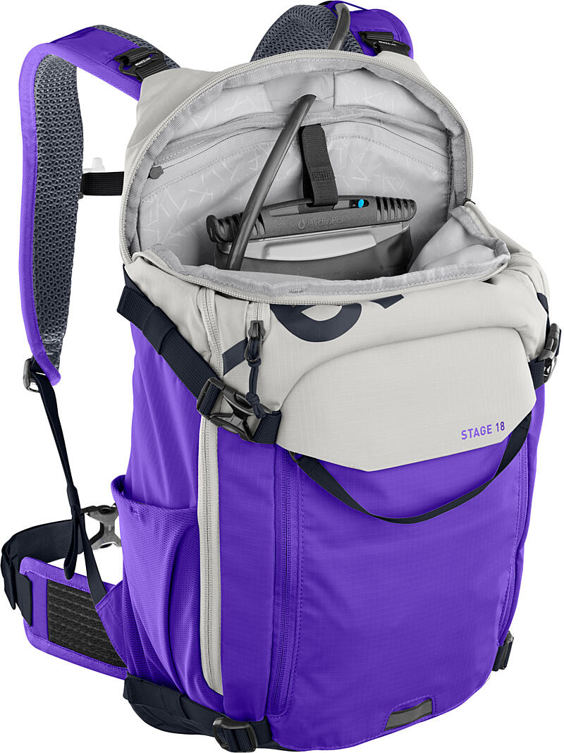 The new STAGE 18 is a versatile MTB backpack for everything needed on demanding tours – while hardly noticing it on your back thanks to its first-class fit and thus plenty of freedom of movement! The updated AIR FLOW CONTACT SYSTEM enables ideal weight distribution and makes overheating one less issue thanks to its unique ventilation concept with wide ventilation channels and wide-meshed back material. The pack with a QUICK ACCESS TOOL COMPARTMENT, HYDRATION SYSTEM COMPARTMENT and SUNGLASS POCKET fits super close to the body to avoid sketchy load shifts, so you can concentrate fully on the trail. Practical straps additionally support compressing your gear.